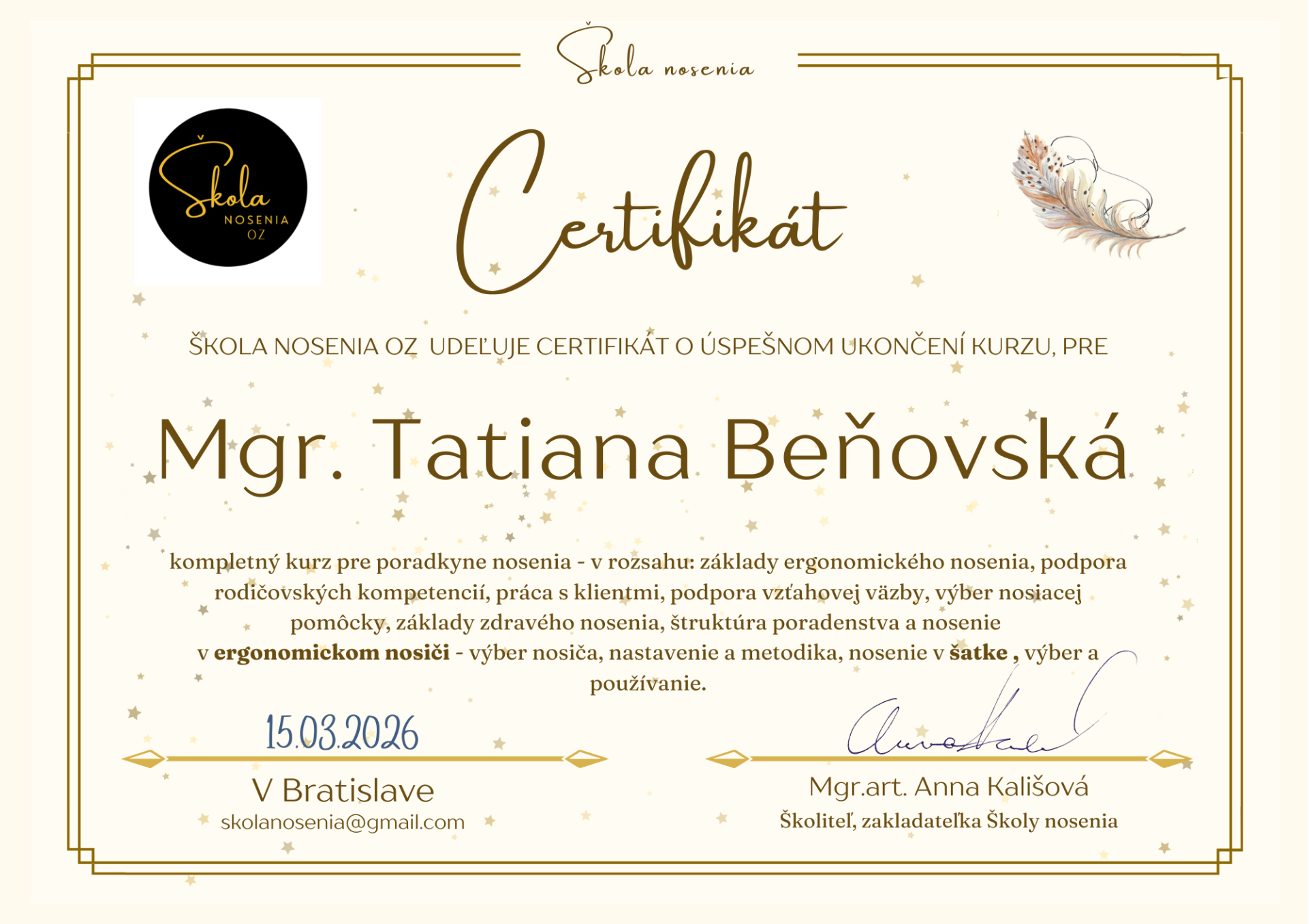 Škole nosenia ukončený kompletný kurz pre poradkyne nosenia.