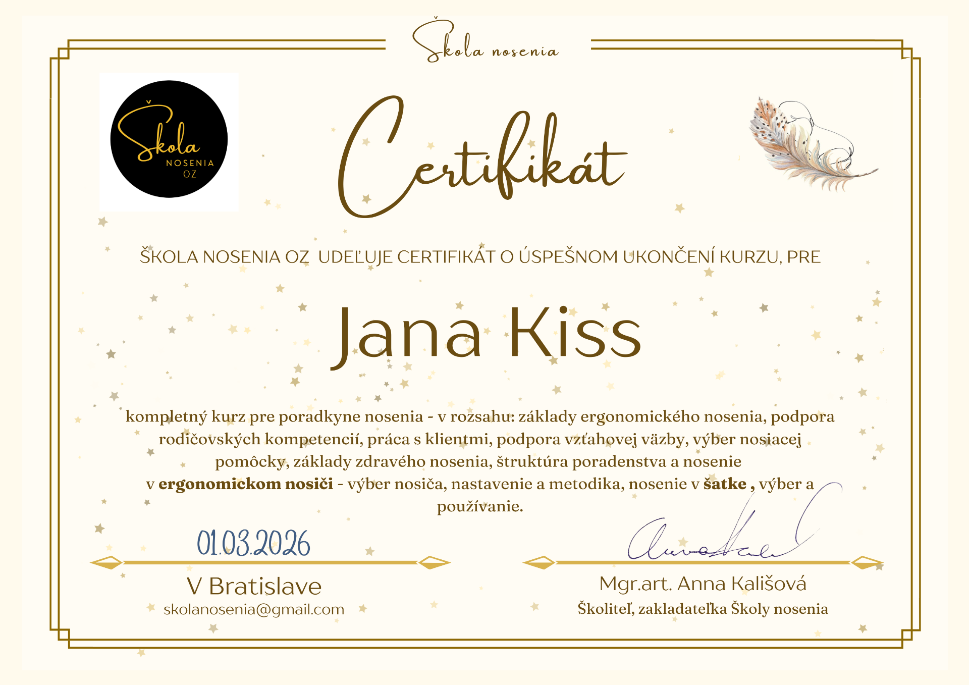 Škole nosenia ukončený kompletný kurz pre poradkyne nosenia.